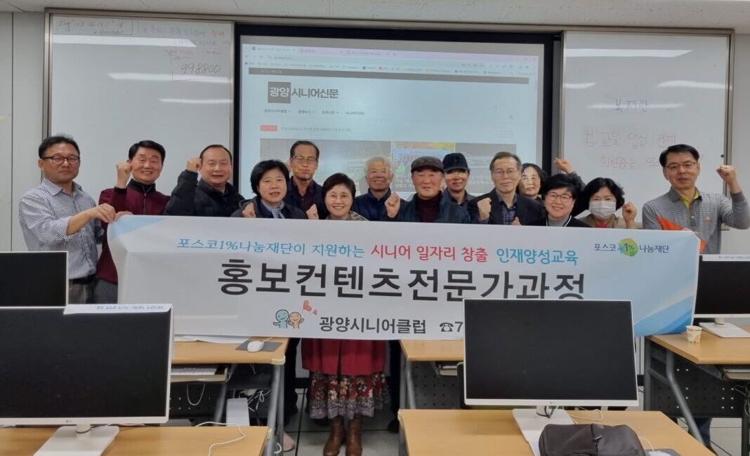 [광양=김대현 기자] 광양시니어클럽이 광양시니어신문 홍보콘텐츠전문기자 2기 인재양성교육을 실시했다. 광양시니어클럽은 11월 19~22일 중마노인복지관 2층 컴퓨터실에서 광양시니어신문 홍보콘텐츠전문기자 2기 인재양성교육을 진행했다. 제2기 광양시니어신문 홍보콘텐츠전문기자 양성교육은 …